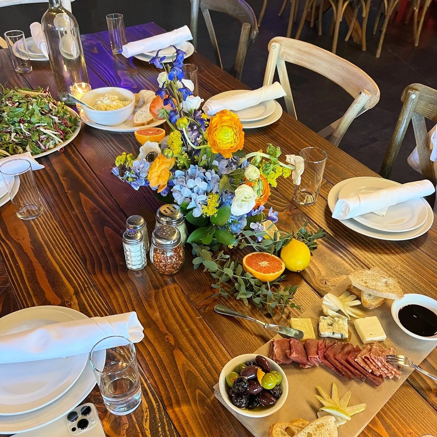 Creative Centerpieces for a Wedding at Santuari in Burbank to accomodate a family-style meal service.